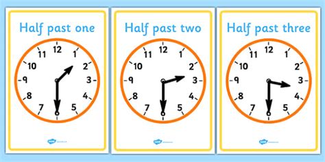 Web A Set Of A4 Posters Displaying Half Past For Each Hour Of The Day.