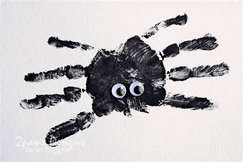 Web handprint spider art project. Using pva glue little n added some googly eyes. First, you start by using the paintbrush and paint your little one's hand with the black paint.