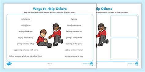 Helping Others Activity Sheets. Web these differentiated activity sheets are all about describing how children can be helpful to others in school, at home and in their community!these activity sheets come in three. English as a second language (esl) grade/level: