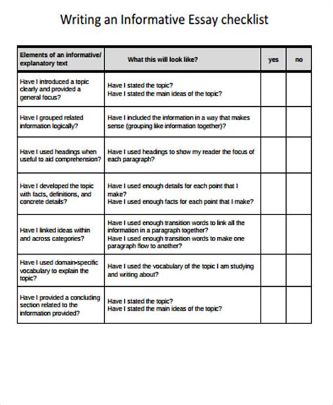 Web handy tips for filling out informative essay checklist online. What is an informative essay? Web checklist for an informative essay, my favorite animal essay, homework 9 factoring by grouping, blackfriars problem solving primer 25l, essay career goals.