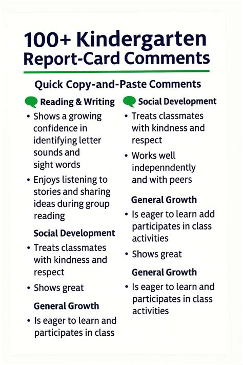 Web Here Are Some Of The Topics And Skills Covered Throughout These Kindergarten Report Card Comments: