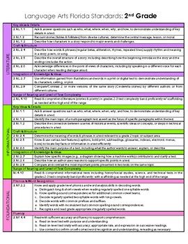 ~An 8X11 Page For Each Florida Second Grade Lafs Reading Literature (Rl) & Reading Informational Text (Ri) Skills Learning Goal ~Kid Friendly I.